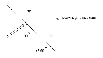 Антенна "sloper" (наклонный диполь), которая по простоте изготовления и установки является одной из распостраненных антенн на диапазонах 3,5 и 7,0 МГц, где для проведения дальних связей важно иметь прижатый лепесток к земле в вертикальной плоскости. Во всех случаях используются антенны с общей длиной излучающей части равной 1/2 длины волны и входным сопротивлением равным 50-75 ом. Из всех модификаций антенн "sloper" наиболее эффективной является антенна с длиной излучающего полотна равной длине волны. Такая антенна занимает несколько большую площадь для ее установки, но все это сразу оправдывается после ее установки и настройки. Антенна имеет входное сопротивление 75 ом, что позволяет ее напрямую запитать коаксиальным кабелем. Для ее симметрирования необходимо намотать несколько витков коаксиального кабеля на ферритовое кольцо непосредственно около самой антенны. Антенна удлиненный "sloper" на рис1. Расчет антенны производится по формулам : 936 Lm = --------- x 0.305 - общая длина антенного полотна F МГц 702 Am = --------- x 0.305 - сторона "А" - плеча антенного полотна. F МГц 234 Bm = --------- x 0.305 - сторона "B" - плеча антенного полотна. F МГц Несимметричная запитка кабеля по отношению к плечам антенны обусловлена тем что включение коаксиального кабеля происходит без всяких согласующих устройств. Центральная жила кабеля подключена к плечу антенны, которое ближе к земле, а оплетка кабеля к верхнему плечу антенны. За счет наклона антенны и расположения антенны, когда более длинное плечо находится у земли за счет этого, лепесток излучения антенны сильно прижат к земле. Коаксиальный кабель идущий от антенны должен идти под 90 градусов к обоим плечам антенны, а сама антенна должна находится под углом к земле 45-60 градусов. Длина кабеля от антенны до трансивера рассчитывается по формуле: L=1/2x 0.66 , если полученной при расчетах длины не нахватает до вашего трансивера, то необходимо взять еще такое же количество коаксиального кабеля, тогда ваш кабель будет работать, как обыкновенный трансформатор 1/1. Данная антенна проработала несколько лет на Си-Би диапазоне и показала хорошие результаты при проведении дальних связей на этом диапазоне